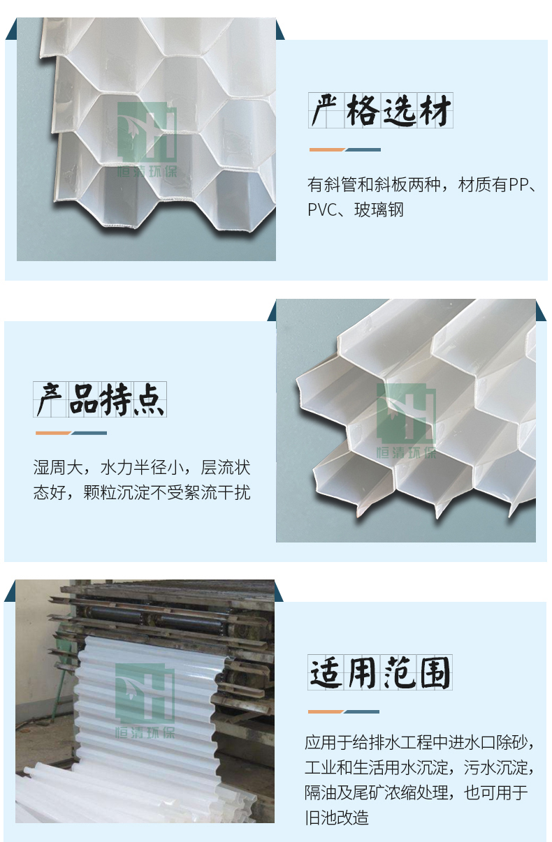 斜管填料有斜管和斜板兩種,材質有PP、PVC、玻璃鋼。