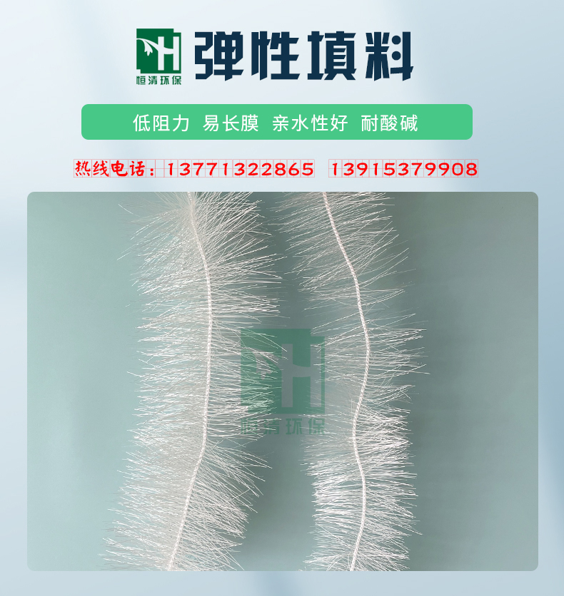 立體彈性填料篩選了聚烯烴類和聚酰胺中的幾種耐腐、耐溫、耐老化的優(yōu)質(zhì)品種,混合以親水、吸附、抗熱氧等助劑,采用特殊的拉絲,絲條制毛工藝,將絲條穿插固著在耐腐、高強(qiáng)度的中心繩上,由于選材和工藝配方精良,剛?cè)徇m度,使絲條呈立體均勻排列輻射狀態(tài),制成了懸掛式立體彈性填料的單體,填料在有效區(qū)域內(nèi)能立體全方位均勻舒展?jié)M布,使氣、水、生物膜得到充分混滲接觸交換,生物膜不僅能均勻的著床在每一根絲條上,保持良好的活性和空隙可變性,而且能在運(yùn)行過程中獲得逐漸增大的比表面積,又能進(jìn)行良好的新陳代謝。