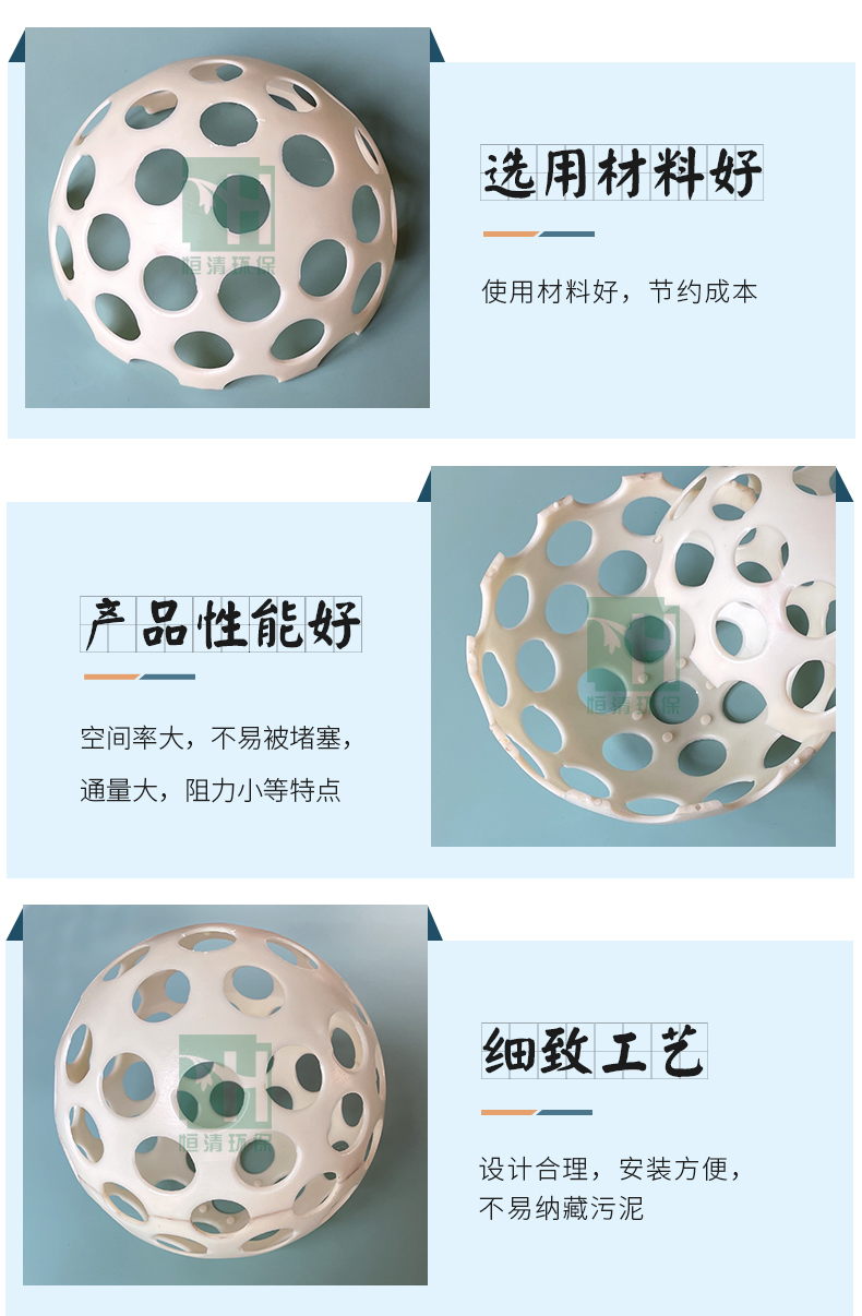 微渦流絮凝器外表光潔,無毛刺內(nèi)部為空心體,表面開多,是一種用于絮凝反應(yīng)過程中擾動(dòng)水流以形成微渦旋而增強(qiáng)絮凝效果的空心球體。