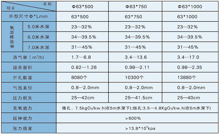 ●曝氣膜片采用進口產(chǎn)品,使用優(yōu)質(zhì)材料經(jīng)特殊加工,性能卓越,使用壽命可達8年以上;